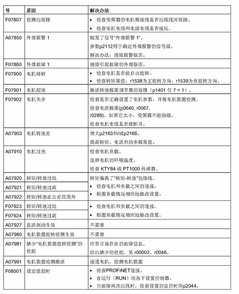 在使用過程中,西門子S120、G120出現(xiàn)故障,可以通過以下內(nèi)容查詢故障原因并采取維修對(duì)策。