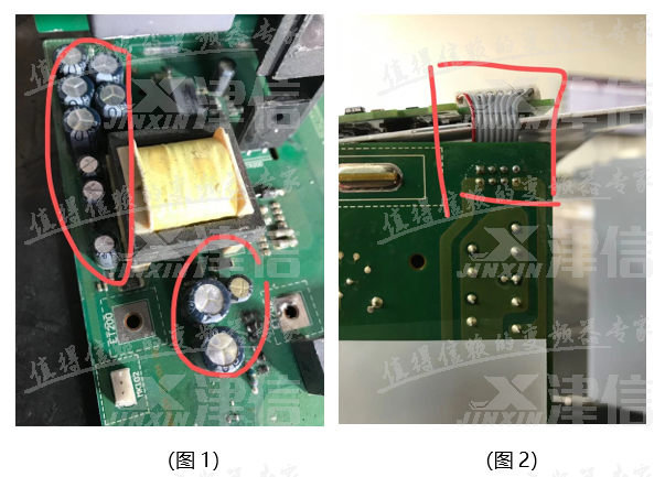 1、開關電源部分的電解電容是否有鼓包、漏液現象(如圖1所示電解電容容易損壞);